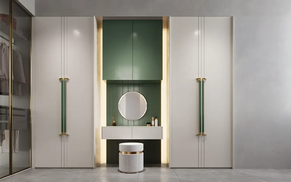 Stindee series, white and green bedroom wardrobe in modern style